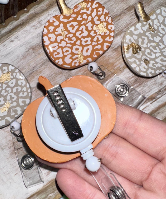 Large cheetah pumpkin badge reel