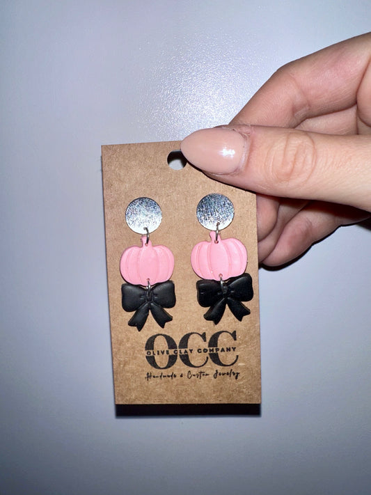 Bow pumpkin clay earrings